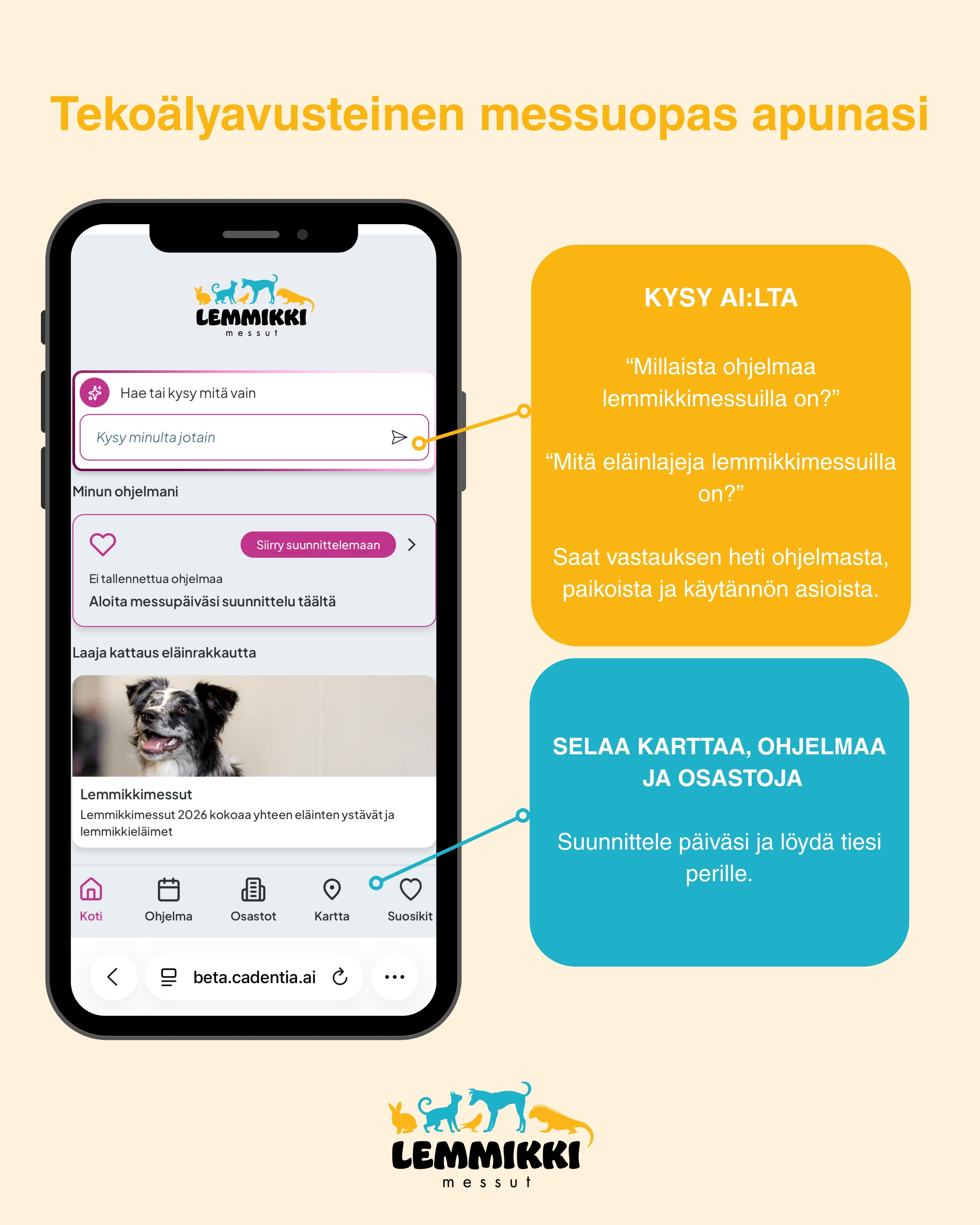 Uutta! Lemmikkimessuilla apunasi toimii uusi tekoälyavusteinen messuopas